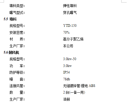附屬設備:回流泵1臺