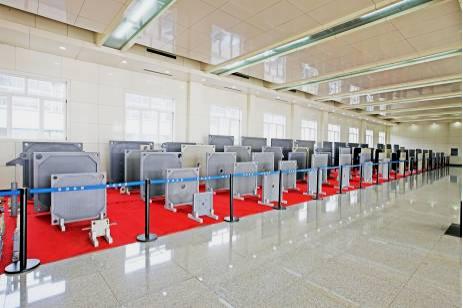 4.通祥集團將免涂油灰技術應用到壓濾機制造上,“通祥集團”壓濾機所有金屬件全部經過高速離心拋丸機噴砂處理,消除銹跡和氧化鐵皮。采用環氧云鐵底漆噴涂處理后,直接涂飾丙烯酸聚氨酯環保型油漆,不僅保護了環境,更重要的是提高了油漆的附著力和壓濾機的防腐等級。
